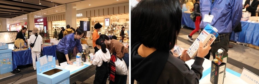 ワークショップ「どれがリサイクルできるかな?紙パックでリサイクルチャレンジ!」の様子