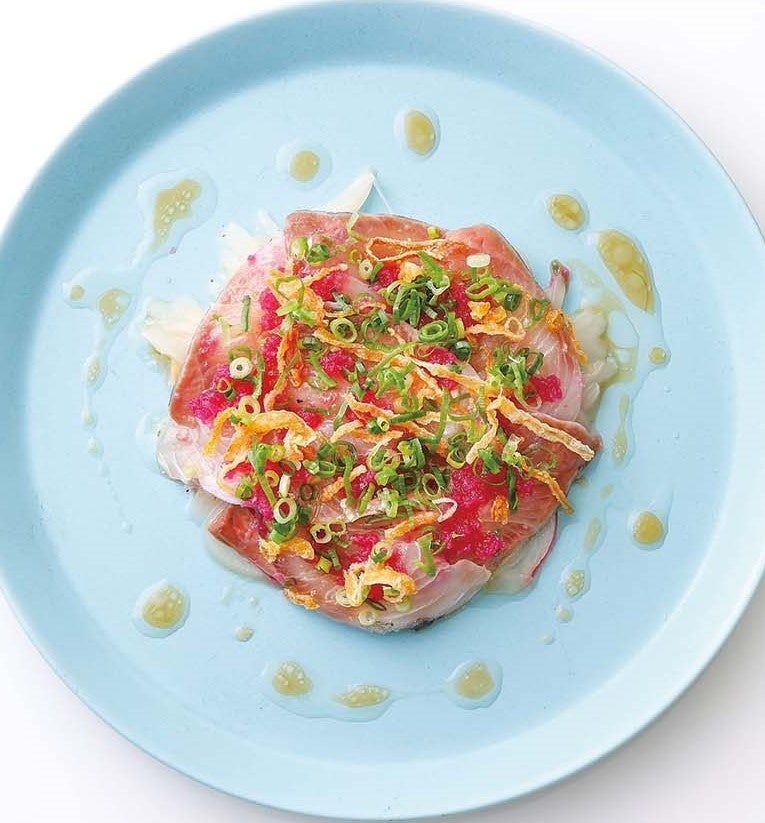 鮮魚のカルパッチョ~玉葱のマリネと多良岳わさびのドレッシングで~ 1,199円