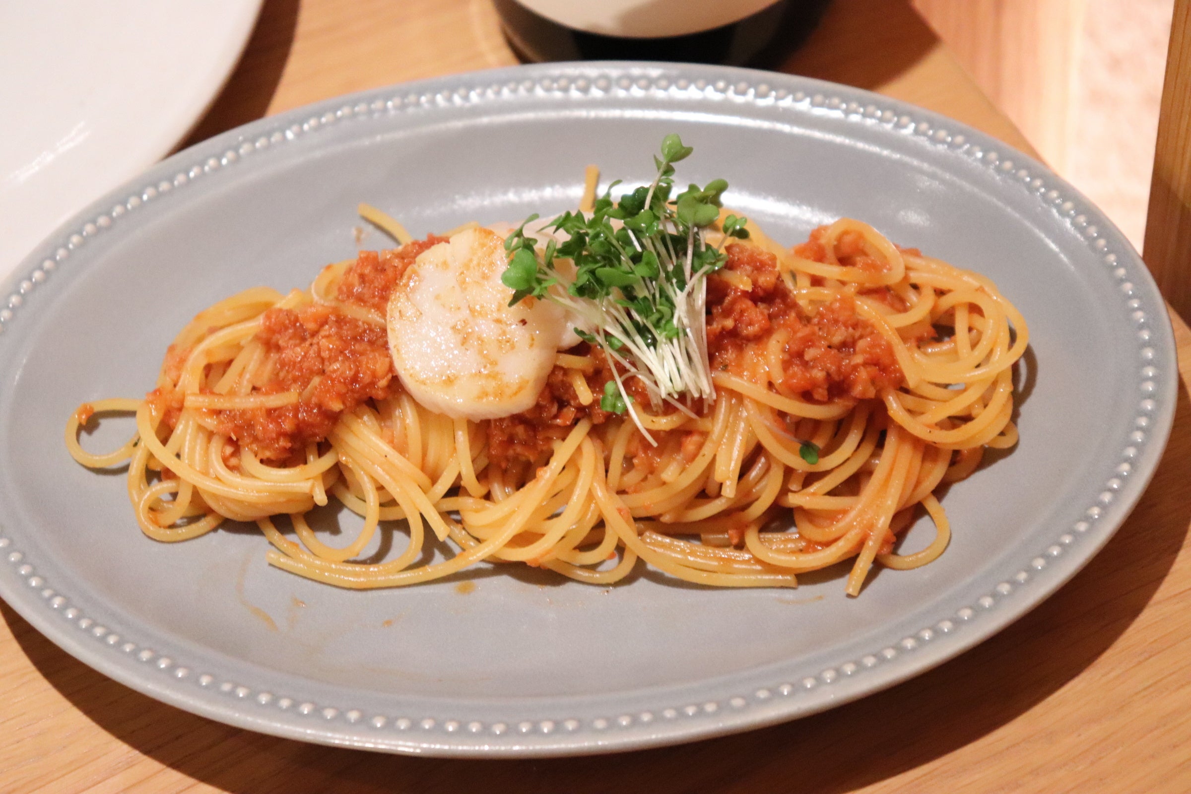 ♦パスタ 帆立貝柱のポアレと甲殻類のラグーパスタ