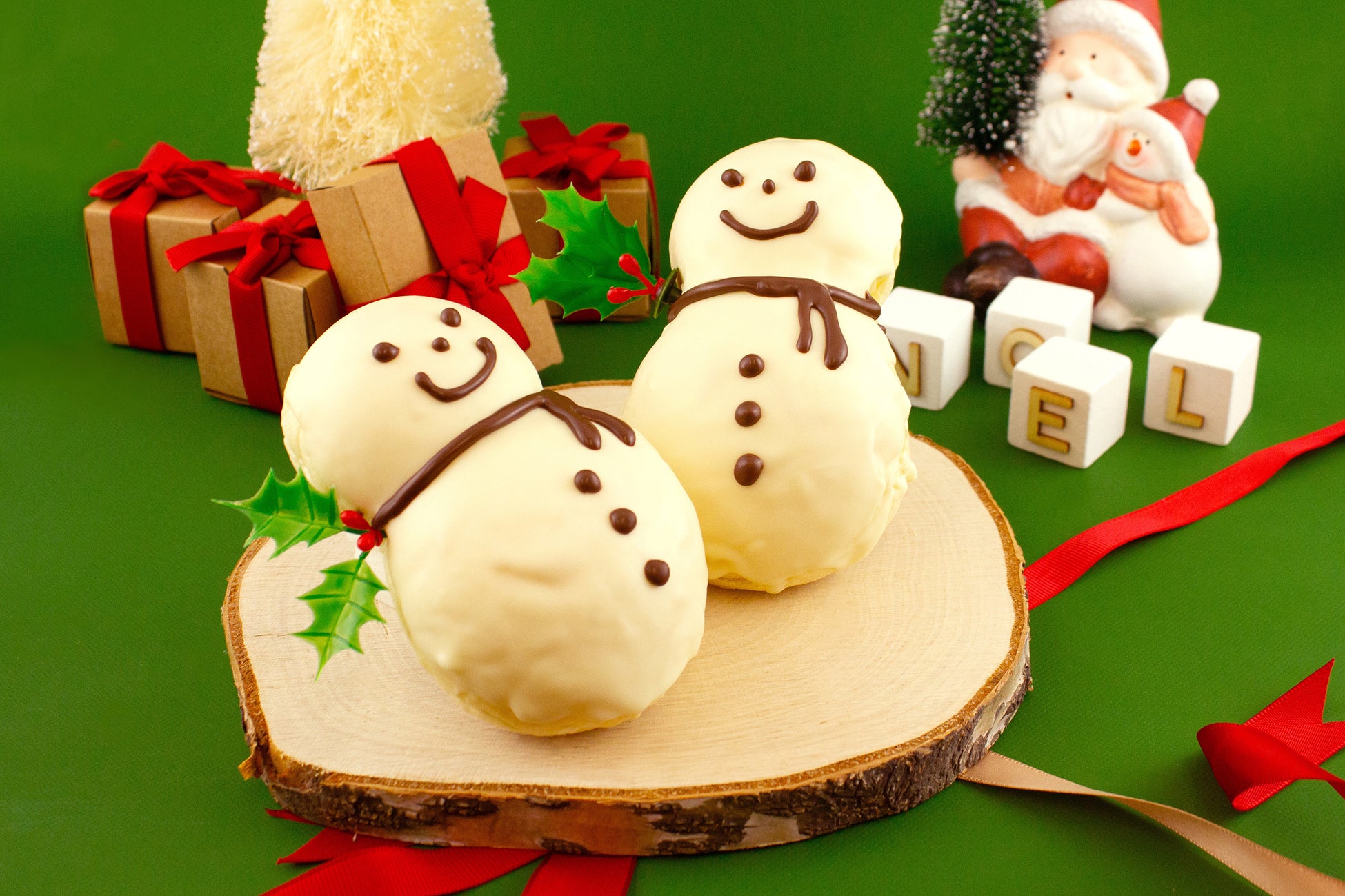 価格:持ち帰り 173円(税込)・店内飲食 176円(税込)北海道練乳クリームをサンドした菓子パンにホワイトチョコをコーティングして、雪だるまの姿に仕上げました。冬にしか会えないキュートな見た目の雪だるまです。