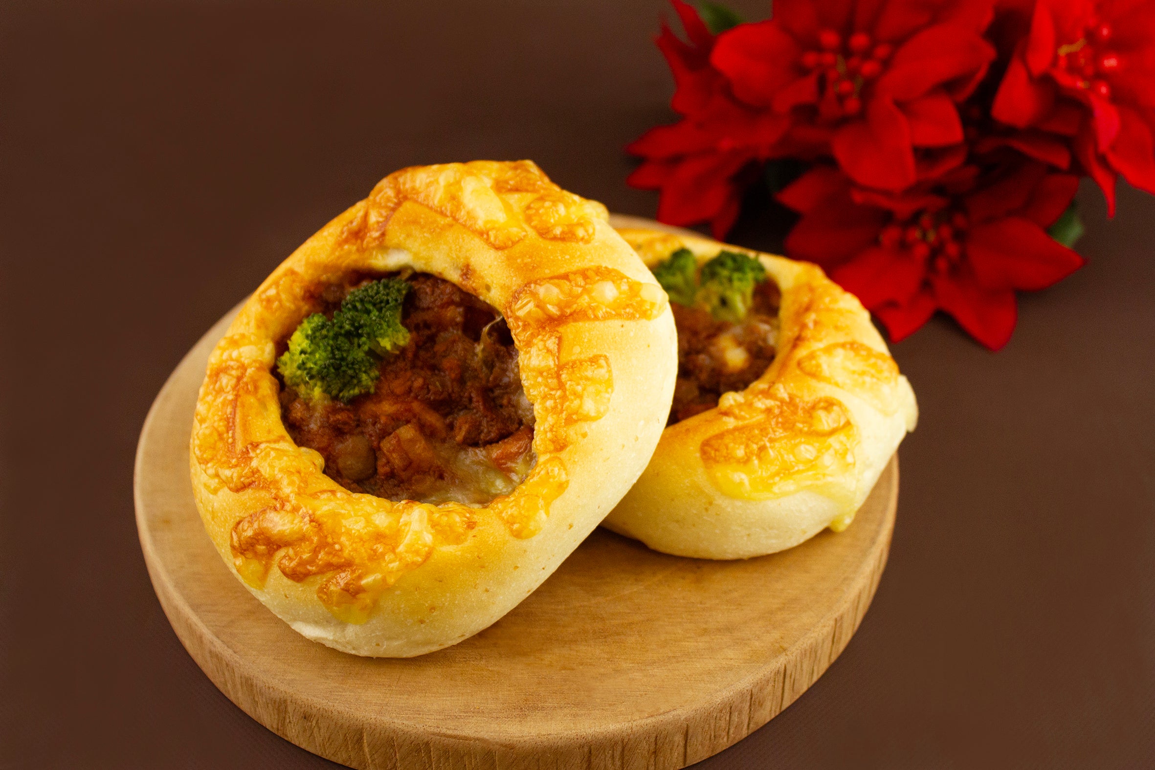 全粒粉入りの生地に、神戸ワインで煮込んだコクのあるビーフシチューフィリングを包み、焼き上げました。寒い冬に温まる一品、ぜひオーブントースターなどで温めてから食べてくださいね。