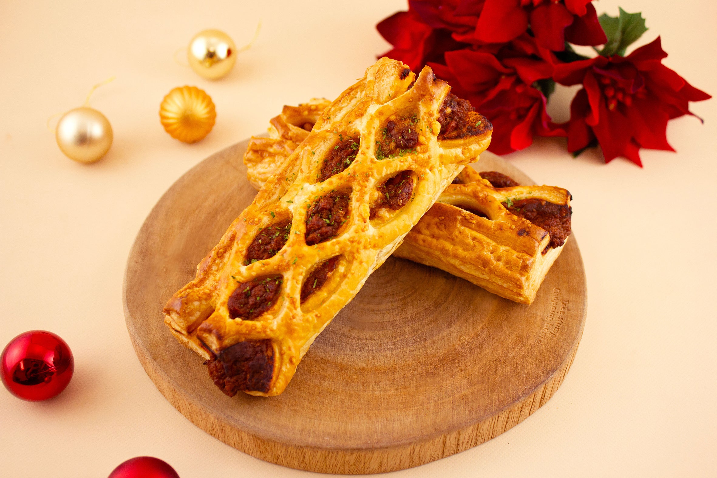 完熟トマトをベースに、粗挽き肉・赤ワイン・チーズなどを加えて煮込んだコクのあるボロネーゼフィリングを包んだミートパイです。サクサク食感のパイとまろやかなボロネーゼが贅沢な一品。
