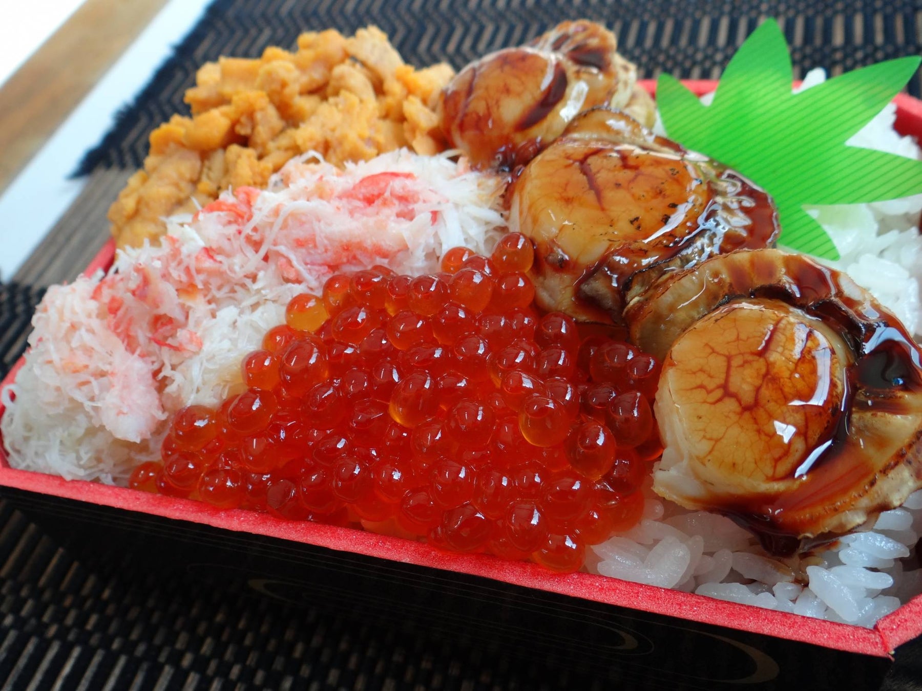 甘みの強い陸奥湾産ほたてと海の幸を贅沢に盛りつけたお弁当です。