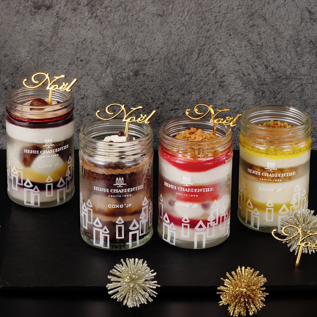 アンリ・シャルパンティエの人気のケーキをモチーフに、瓶容器ならではのデザイン性にも気を配りながら、4種類のケーキをご用意いたしました。