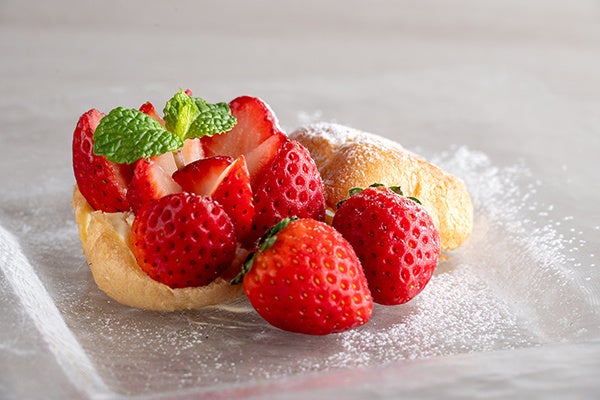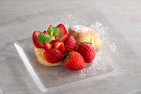 まずはいちごをそのままお召し上がりください。食べた瞬間に際立つ甘みとほのかな酸味の絶妙なバランスを感じていただけます。その後、カスタードやシュー生地と一緒にお召し上がりください。瑞々しいいちごとなめらかなクリームをシュー生地が包み込み、口の中が幸福で満たされます。
