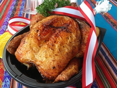 メニュー内容:鳥取県大山丸鶏 スパイスマリネローストチキン 1羽・ヨーグルトソース・フライドポテト