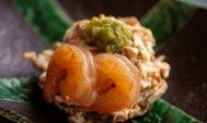 帆立紐クリーム豆腐和え 茎山葵漬(生海老醤油漬け)