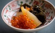 *能登赤モク三宝和え(蒸あわび・数の子・いくら)