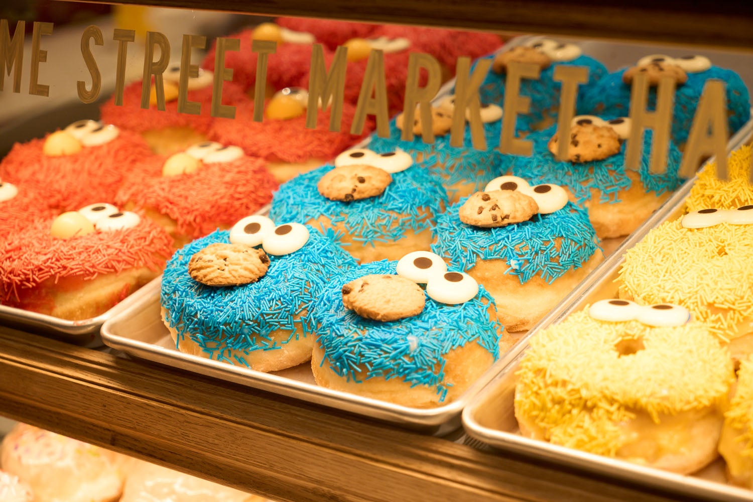 特に店内奥、セサミストリートに登場する食料品や日用品を販売している店舗「HOOPER’S STORE(フーパーズストア)」と外のテーブルセットは再現性も高く、フォトスポットとしてもおすすめ。