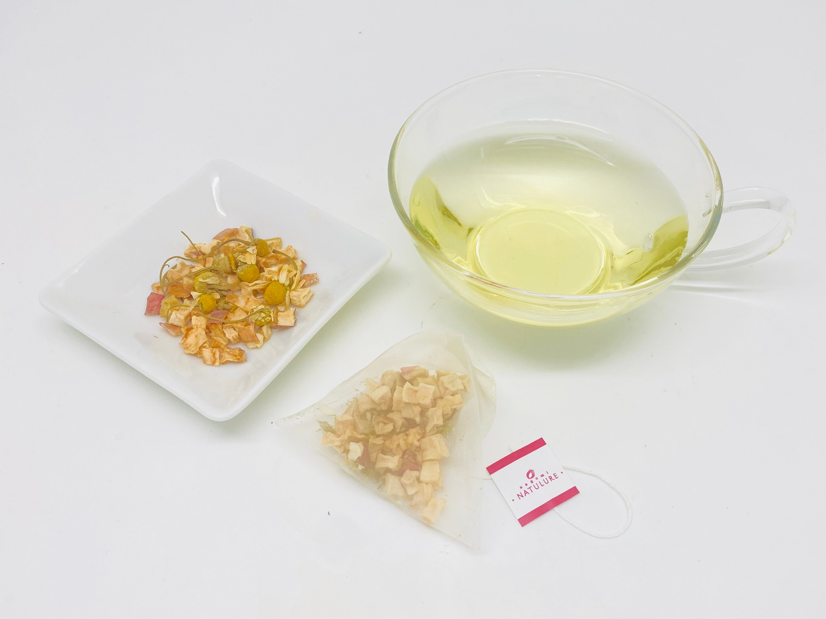 原材料:有機アップルピース(オーストリア)、有機カモミールジャーマン(エジプト)