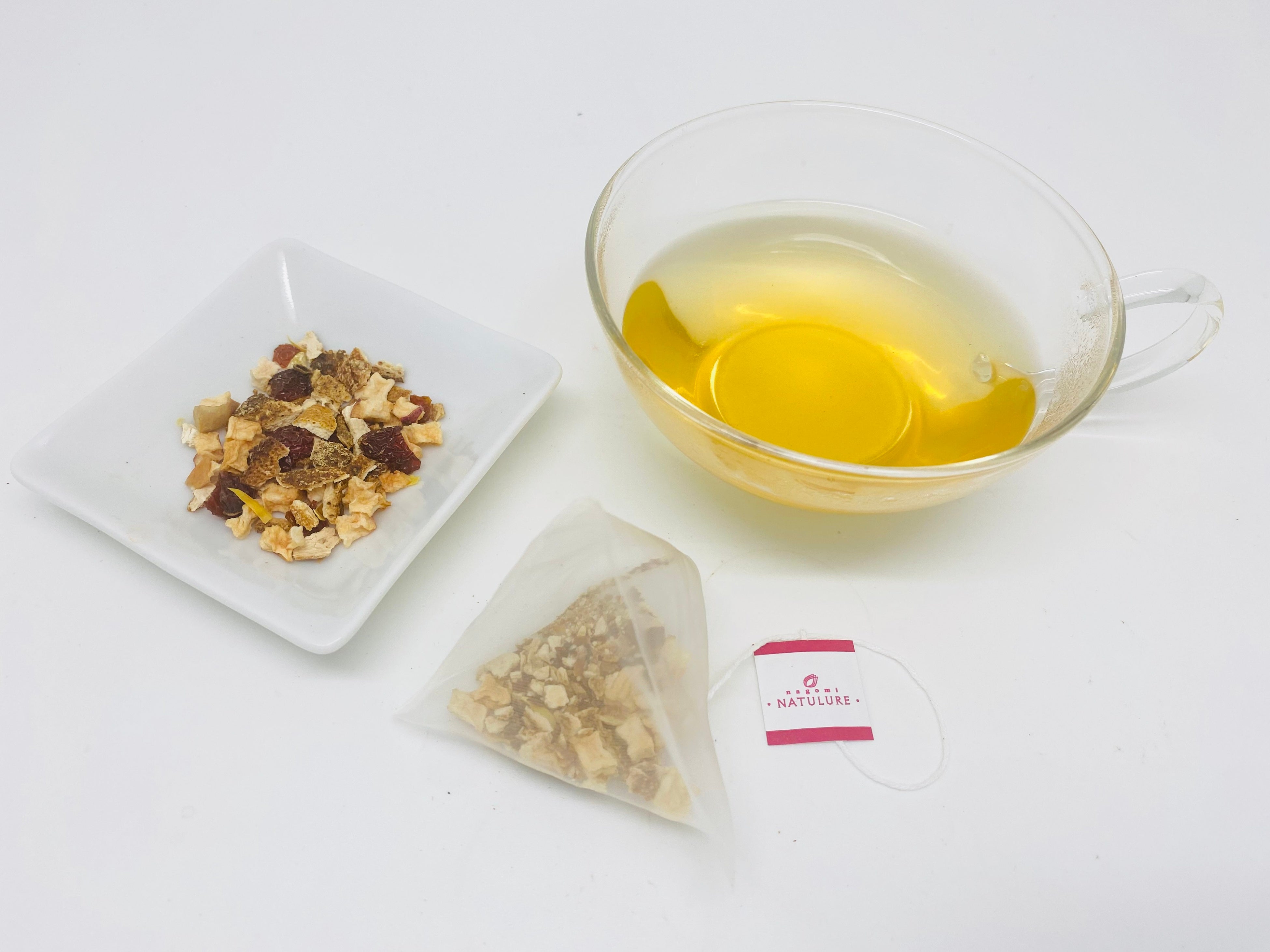 原材料:有機オレンジピール(タンザニア)、有機アップルピース(オーストリア)、有機ローズヒップ(チリ)、有機ゆず(徳島県)