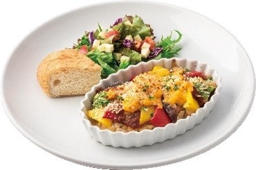 プラントベースのバターやチーズをたっぷり使った野菜のグラタン。