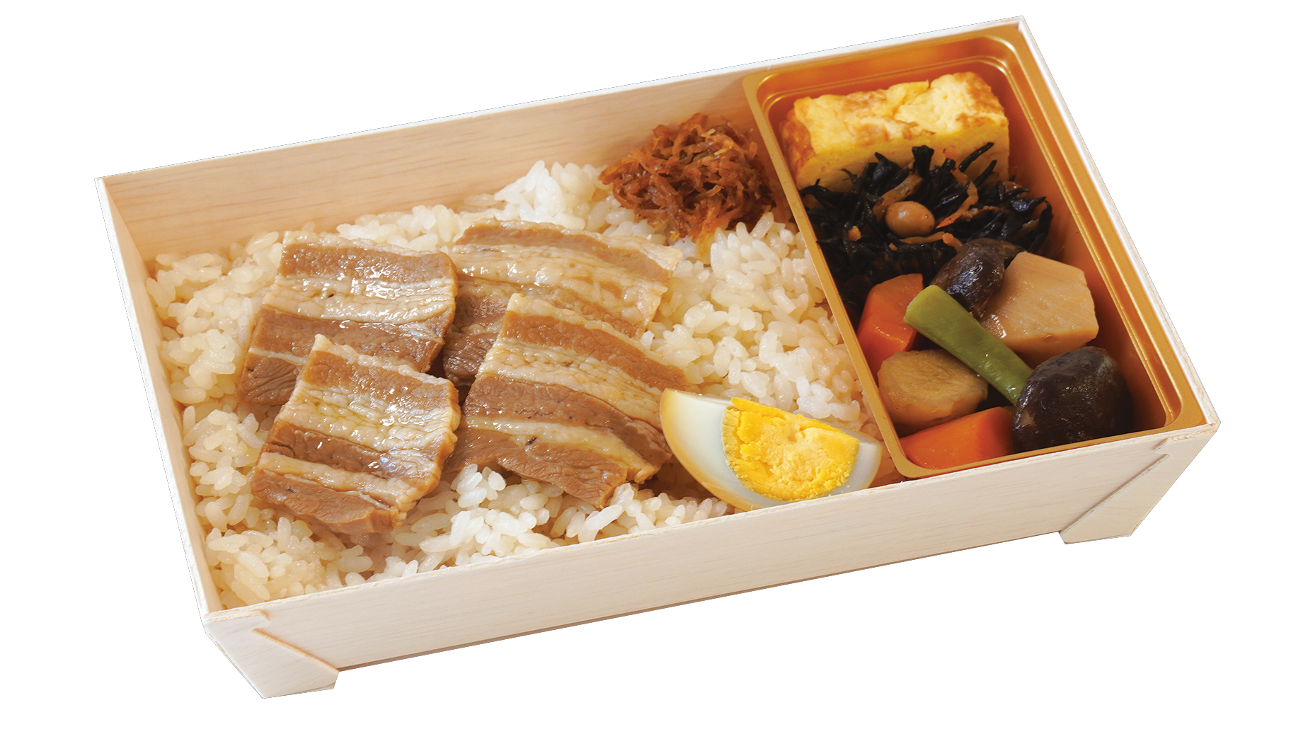 かつお節だしを利かせ、ふわっと香るおだしの香りと優しい味わいが人気の”だし炊き込みご飯”の上に、かつお節だしと八角で甘辛く煮た豚バラ肉をのせました。タレの味わいでご飯がすすむ一品です。