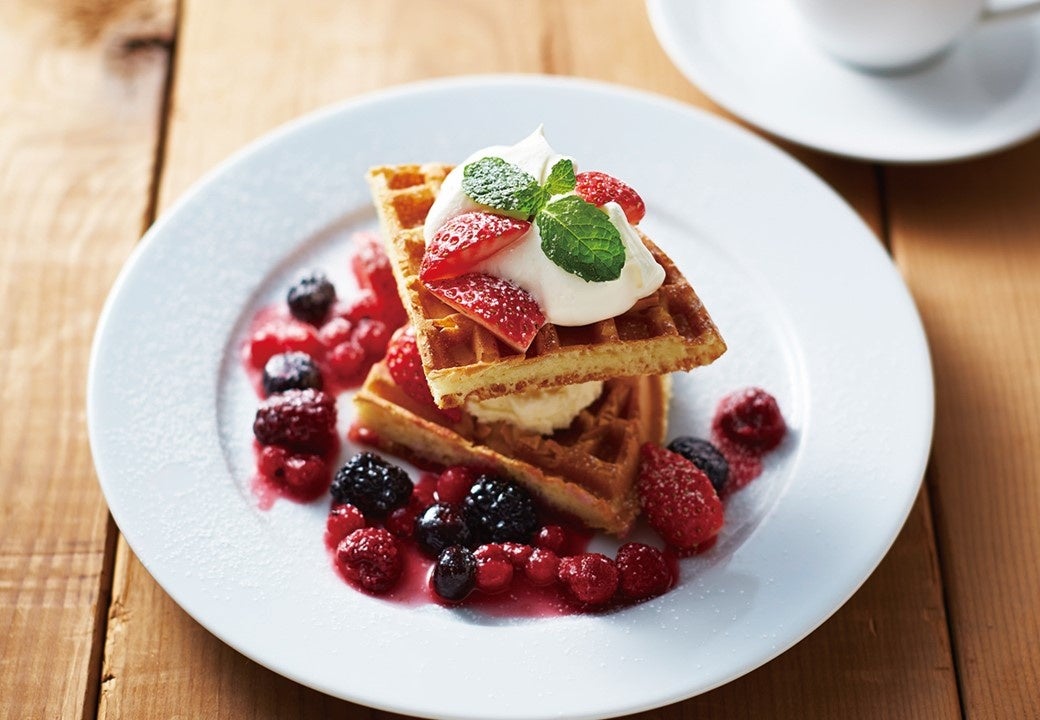 アーモンドワッフルサンドとお飲み物(ミックスベリーとマスカルポーネクリーム)