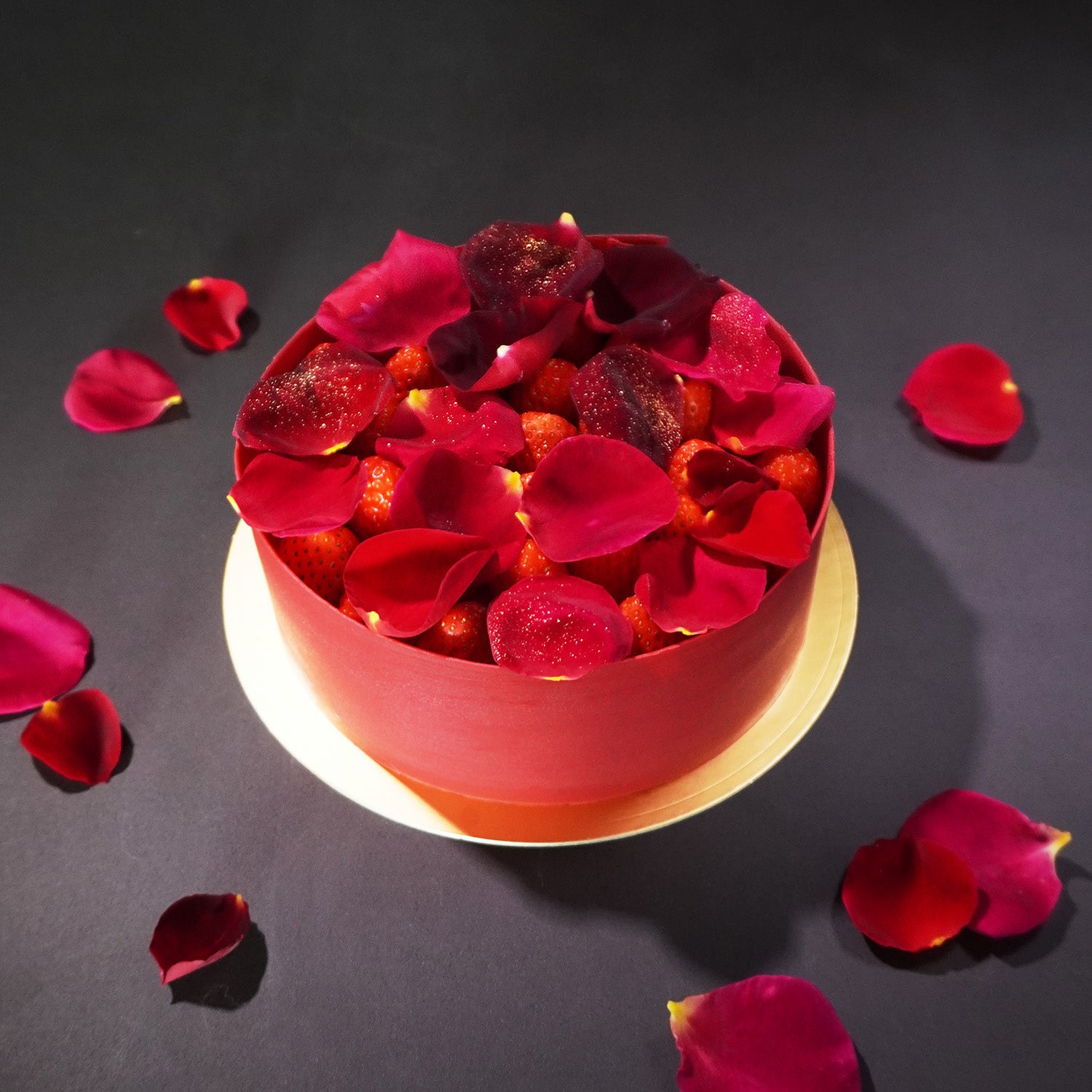 リベルテが得意とするフランスと日本の厳選された高級食材で作る特別なクリスマスケーキを、開業5周年を記念し特別販売いたします。フランスのシャンパーニュメゾン<ヴーヴ・クリコ>のシャンパンを贅沢にジュレにし、フランス<イズニー>の発酵バターでコクを加えたカスタードクリーム、そしてたっぷりのイチゴと合わせました。周りを囲ったチョコレートには天然由来のフランボワーズの上質な味わい、ジューシーさを併せ持つフランス高級ショコラブランド<ヴァローナ>の「インスピレーション・フランボワーズ」を使用しています。デコレーションには島根県奥出雲で誕生した「さ姫」のエディブルローズを散りばめ、フルーティな香りとゴージャスな印象に仕上げました。特別な日に相応しいクリスマスケーキをぜひお楽しみください。