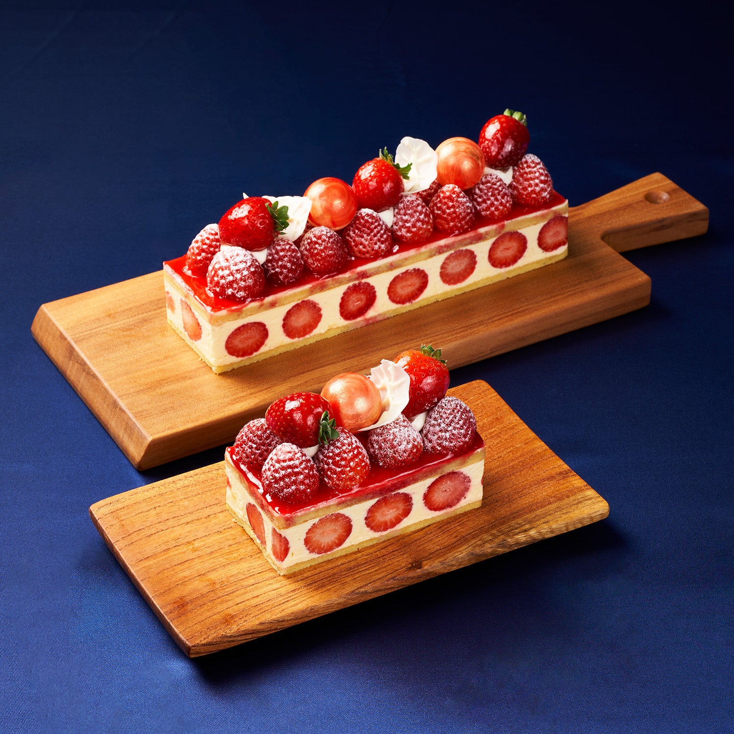 リベルテ冬の1番人気フランス版ショートケーキ「フレジエ」のクリスマス特別バージョンが登場!今年は初となる待望のハーフサイズもご用意いたしました。グラスフェッドバターでコクを加えたくちどけの良いカスタード