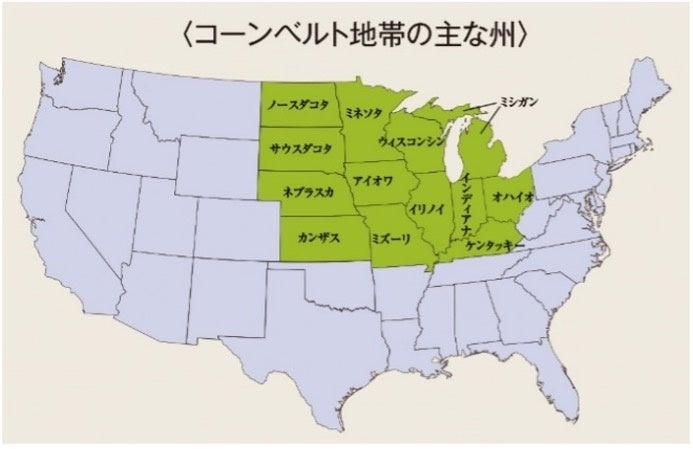 アメリカ産コーンの主産地であるアイオワ州、ネブラスカ州などの「コーンベルト地帯」で生産されるコーン。「コーンベルト地帯」は作物栽培に優れた土壌と、コーン栽培に適した気候の両方を兼ね備えています。