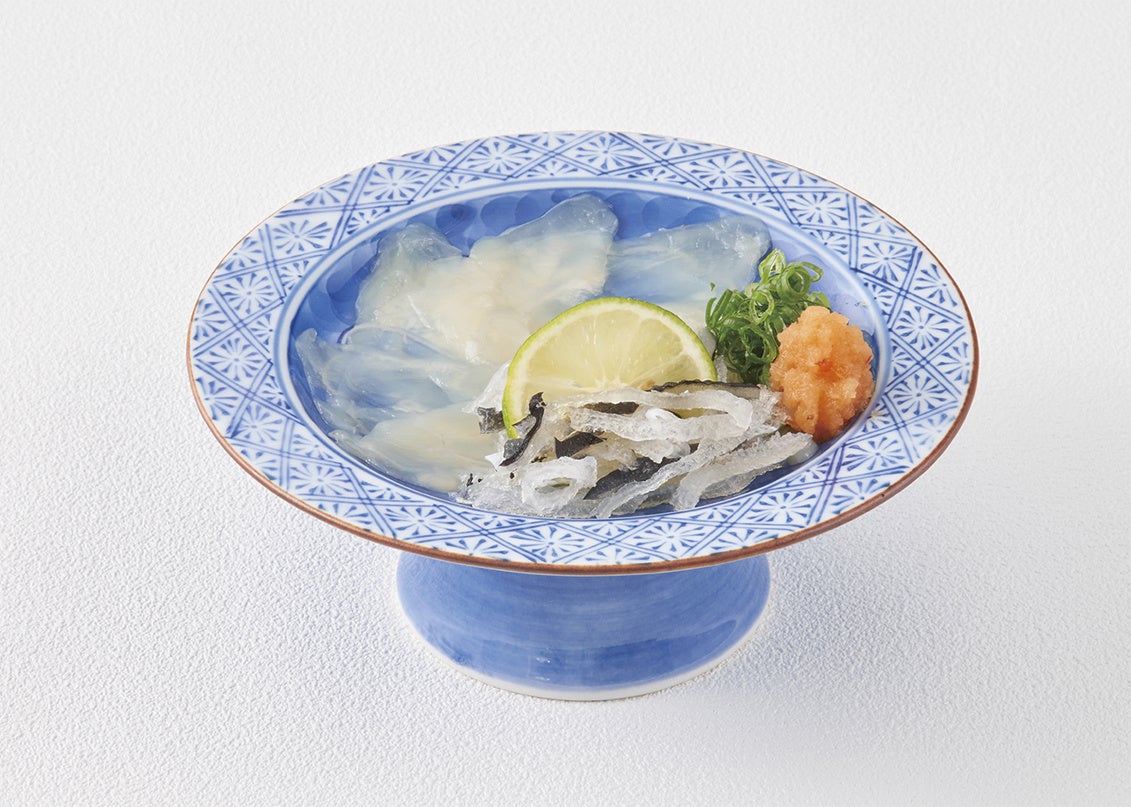 弾力のある身を一枚一枚丁寧に盛り付けました。お造りならではの食感を是非ご堪能くださいませ。