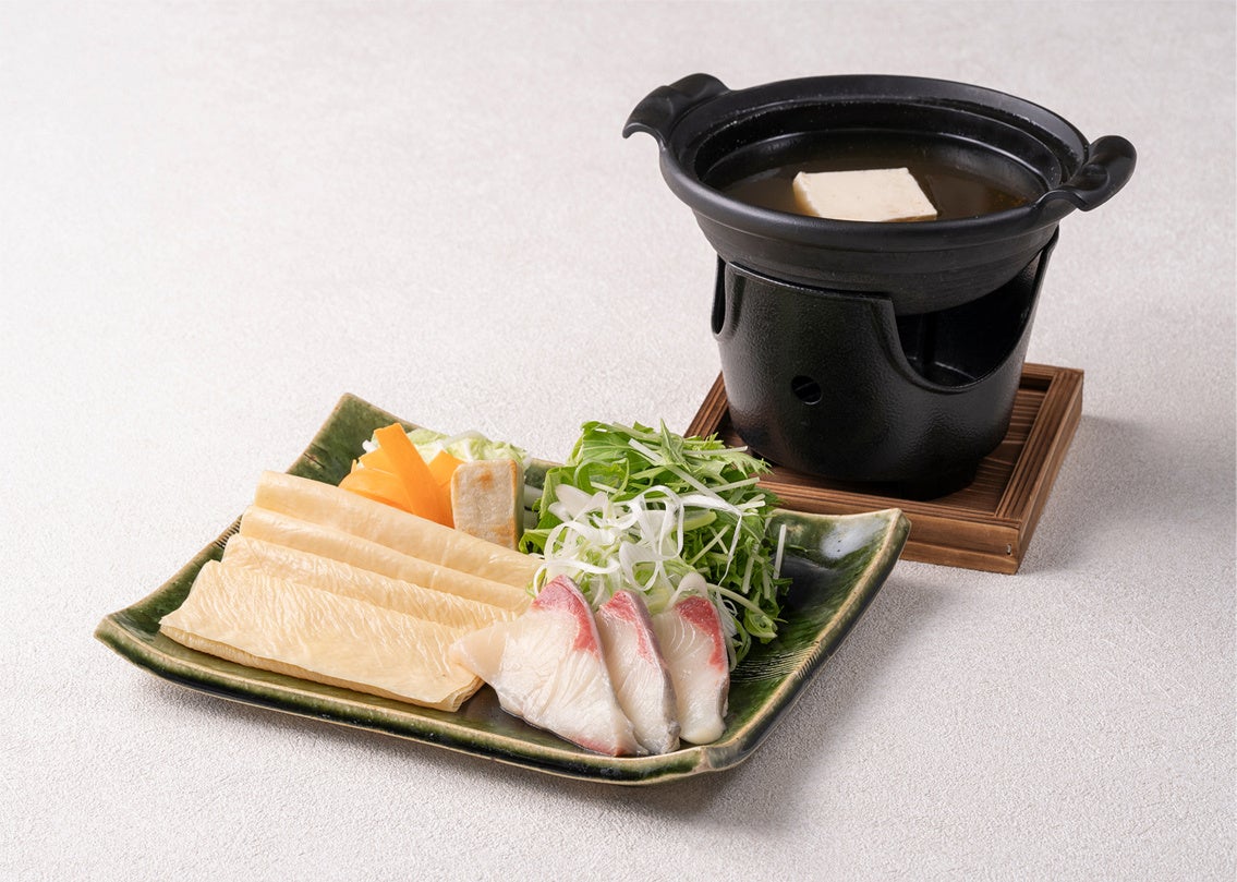 たっぷりの湯葉、野菜と共に、旬の鰤をしゃぶしゃぶしてお召し上がりください。