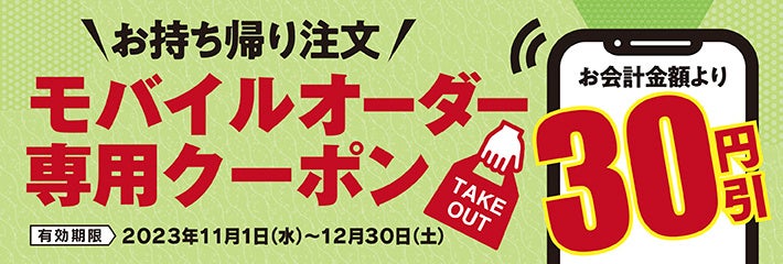 更に、今ならモバイルオーダー専用30円引きクーポンをプレゼントしております。