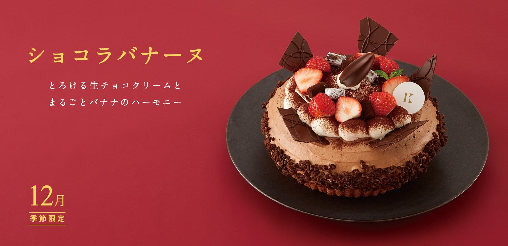 2012年に誕生し、毎年12月に販売し続けている、バナナとチョコレートの王道の組み合わせが毎年人気のケーキです。