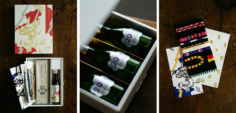 京都の老舗蕎麦店「本家 尾張屋」の京都名物「にしんそば」や菓子メーカー「伊藤軒」の老若男女に愛される素朴なお菓子など、京都ならではの商品の他に季節の柄を京型友禅で染色した手ぬぐいや宇治茶など、用途によって使い分けできる幅広い商品ラインナップ。来年の干支「辰」をデザインした縁起の良いパッケージも期間限定です。一年を締めくくる大切な贈り物にぴったりな一品が見つかるはずです。