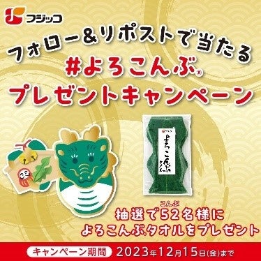 また、フジッコ公式X(旧Twitter)でも、2023年12月1日(金)より「よろこんぶタオル」が抽選で当たる「フォロー&リポスト」キャンペーンを開催いたします。
