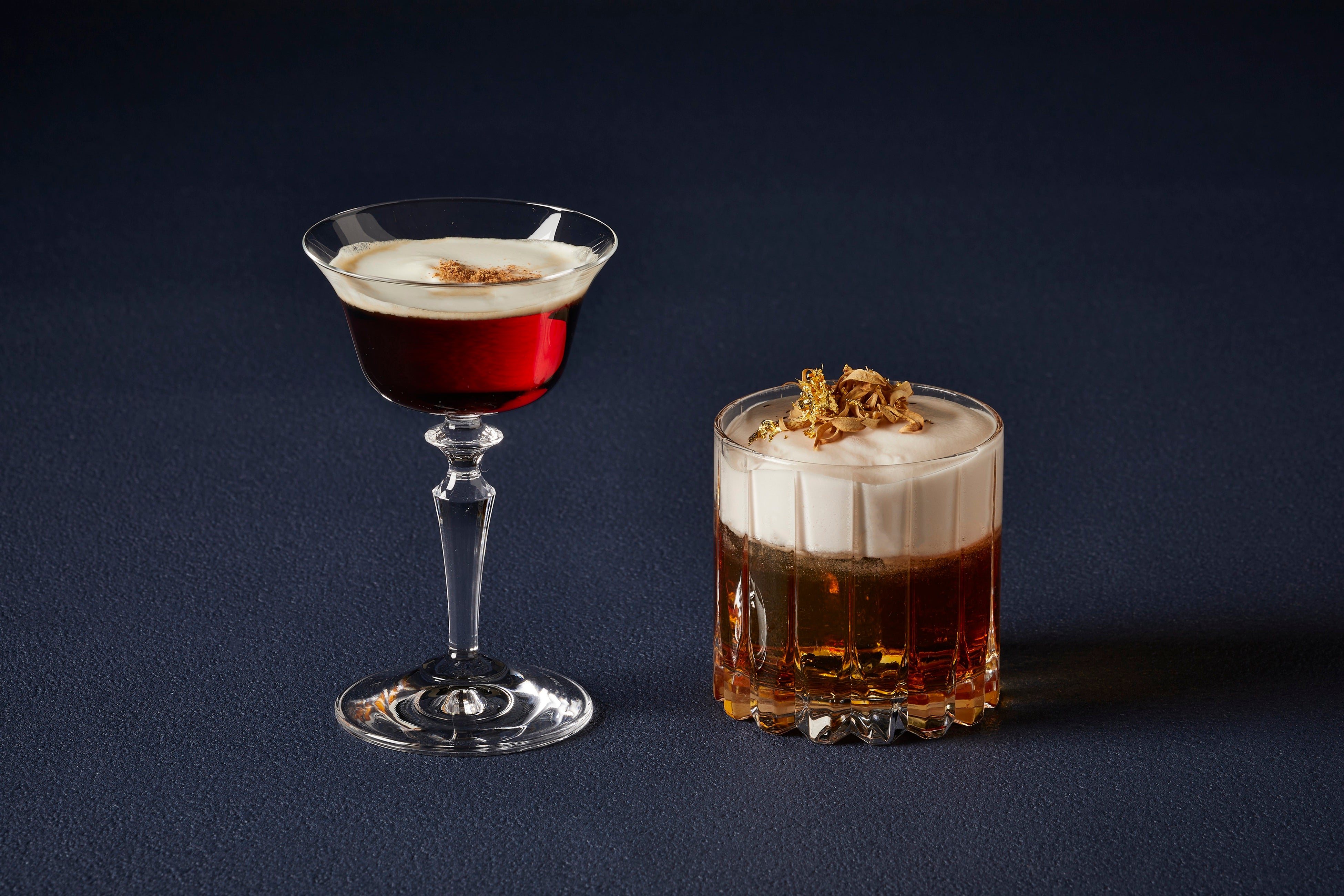 東京の摩天楼を一望できるザ・バーでは、フェスティブ気分を盛り上げる「ゴールデン ファッションド」と「アマレット アレキサンダー」の2種類のスペシャルカクテルをご用意いたします。