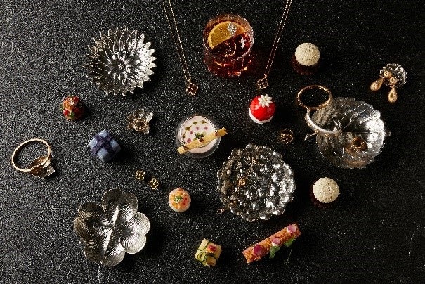 5品のセイボリーにはホリデーシーズンを祝うに相応しい黒毛牛のローストビーフやオマール海老、キャビアなど厳選した高級食材を使用した他、2種類のフィンガーサンドとブチェラッティの花をモチーフにしたジュエリーからインスピレーションを得た「ウンブリア カライブチョコレートケーキ 赤ワインフィグのコンポート」など、6品のスウィーツをご堪能いただけます。