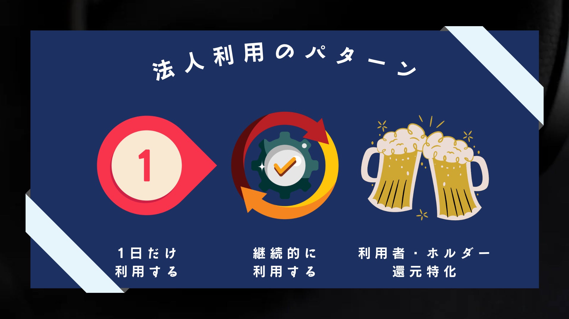 毎月特定の日付を特定サービスやNFTプロジェクトの日として設定し、サービス利用者やNFTホルダーがリアルで定期的に集まる機会を提供するものです。サービス利用者・NFTホルダーならその日は完全無料とすることもできますし、来店者に対してプレゼントをお渡しすることもできます。