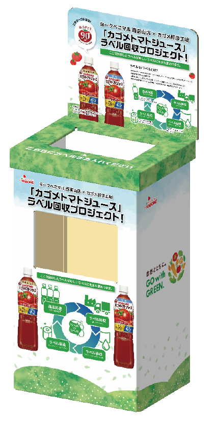 初回となる今回は、「カゴメトマトジュース 食塩無添加・低塩 各720mlPET」(発売90周年記念のロゴ入り パッケージ)を対象商品とし、株式会社ヨークベニマル 西富山店に回収のための専用ボックスを設置し、10月~12月の期間、回収を行います。