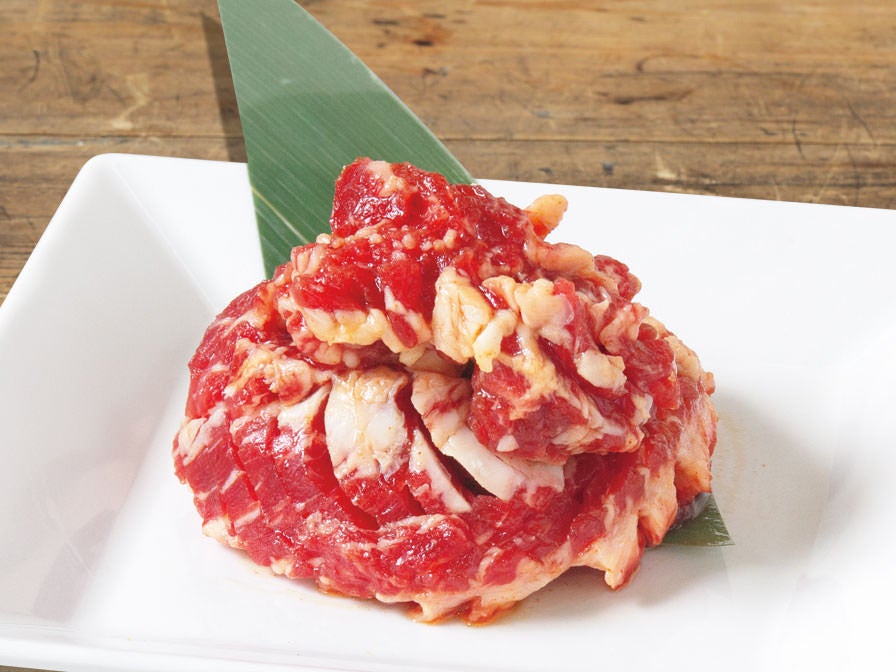 屋号になるほど人気のカルビです。3週間以上熟成して、店内で丁寧に手切りをしています。