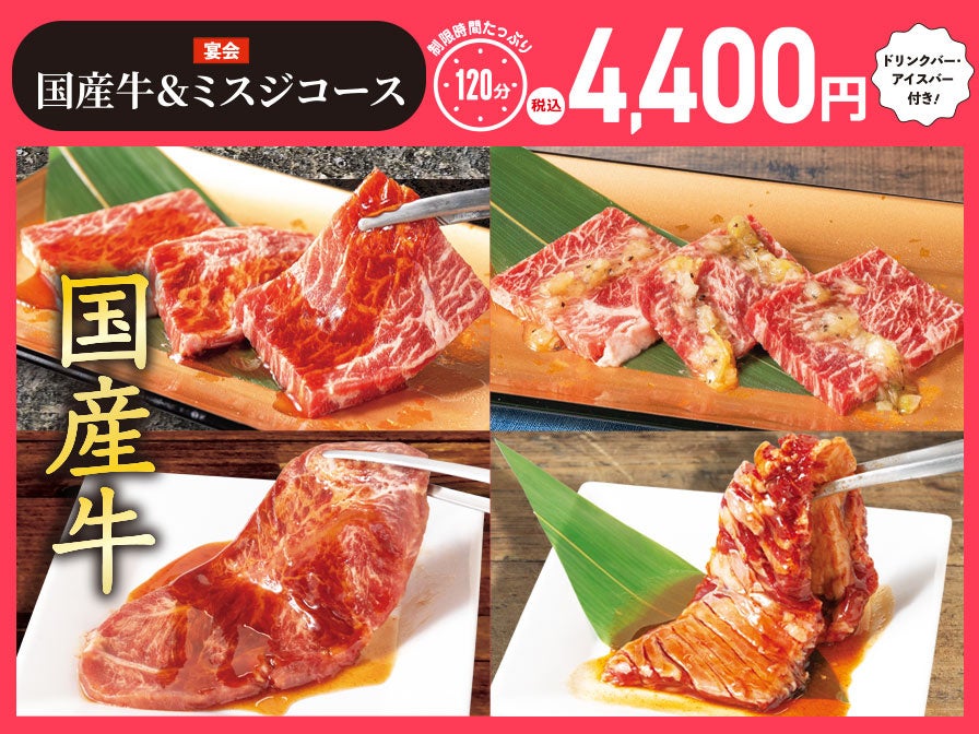 ③【宴会】国産牛&ミスジコース+ドリンクバー+アイスバー(税込4,400円)