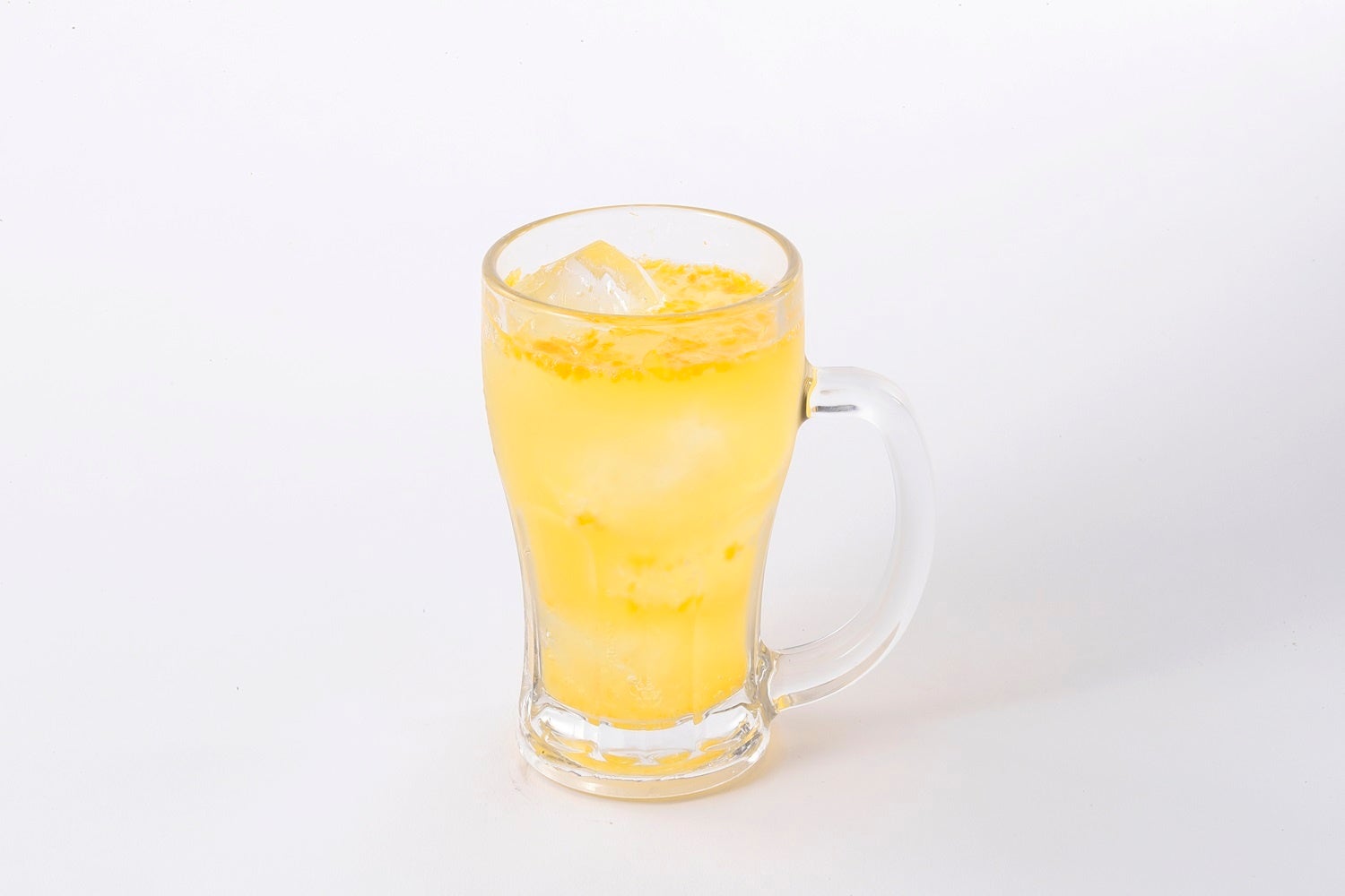 濃厚なヨーグルトのお酒をオレンジで割りました。低アルコールで飲みやすくなっております。