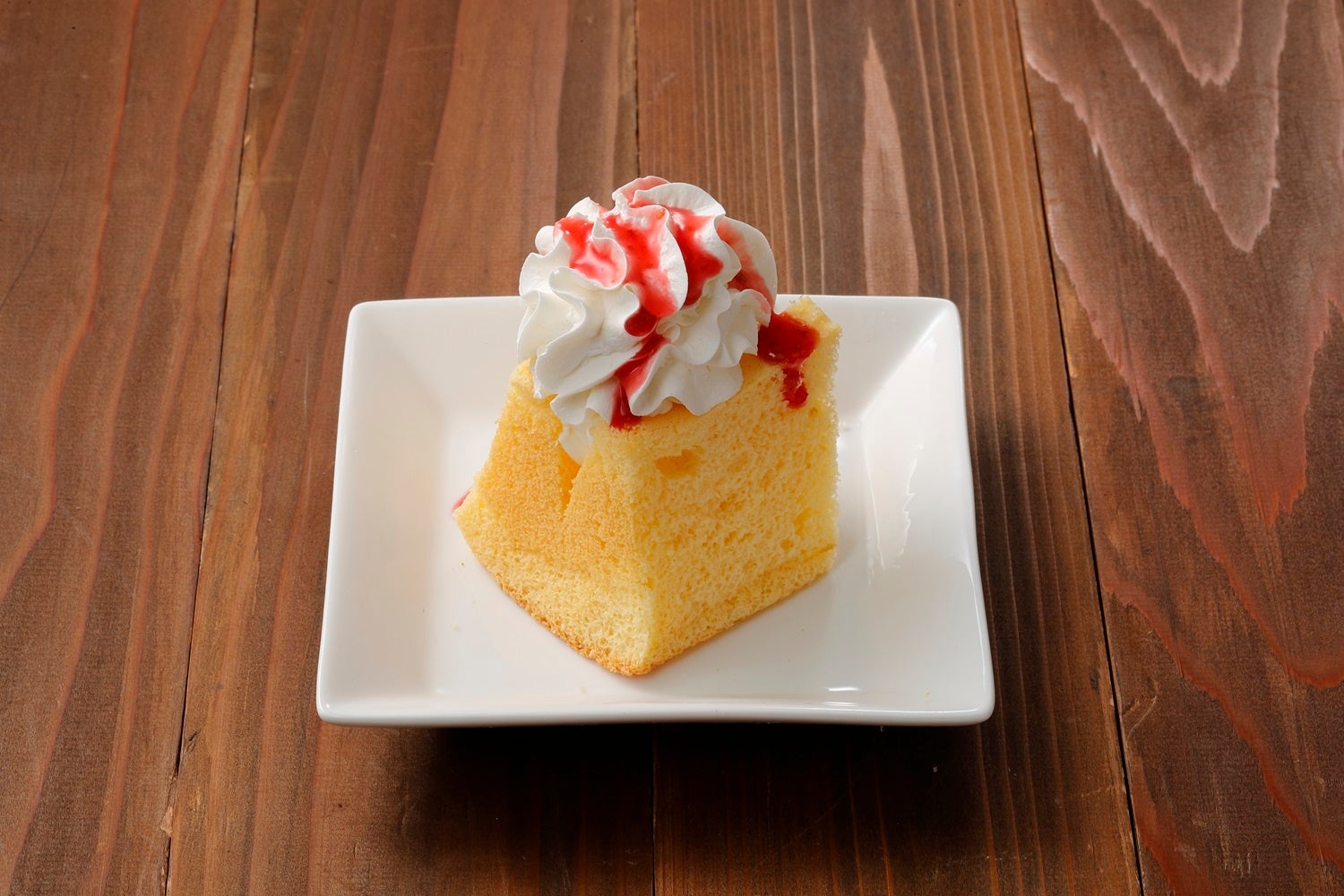 ふわふわのシフォンケーキに、とちおとめや紅ほっぺ等の厳選した国産苺シロップと生クリーム使用のホイップを乗せました。
