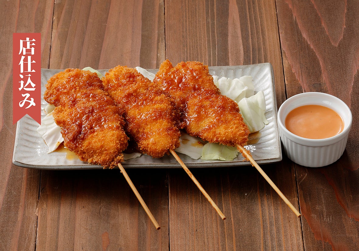 高知県のソウルフード「チキン南蛮」を鳥貴族風にアレンジ。ケチャップとマヨネーズをベースにウスターソースでコクの効かせたオーロラソースをたっぷりかけてお召し上がり下さい。