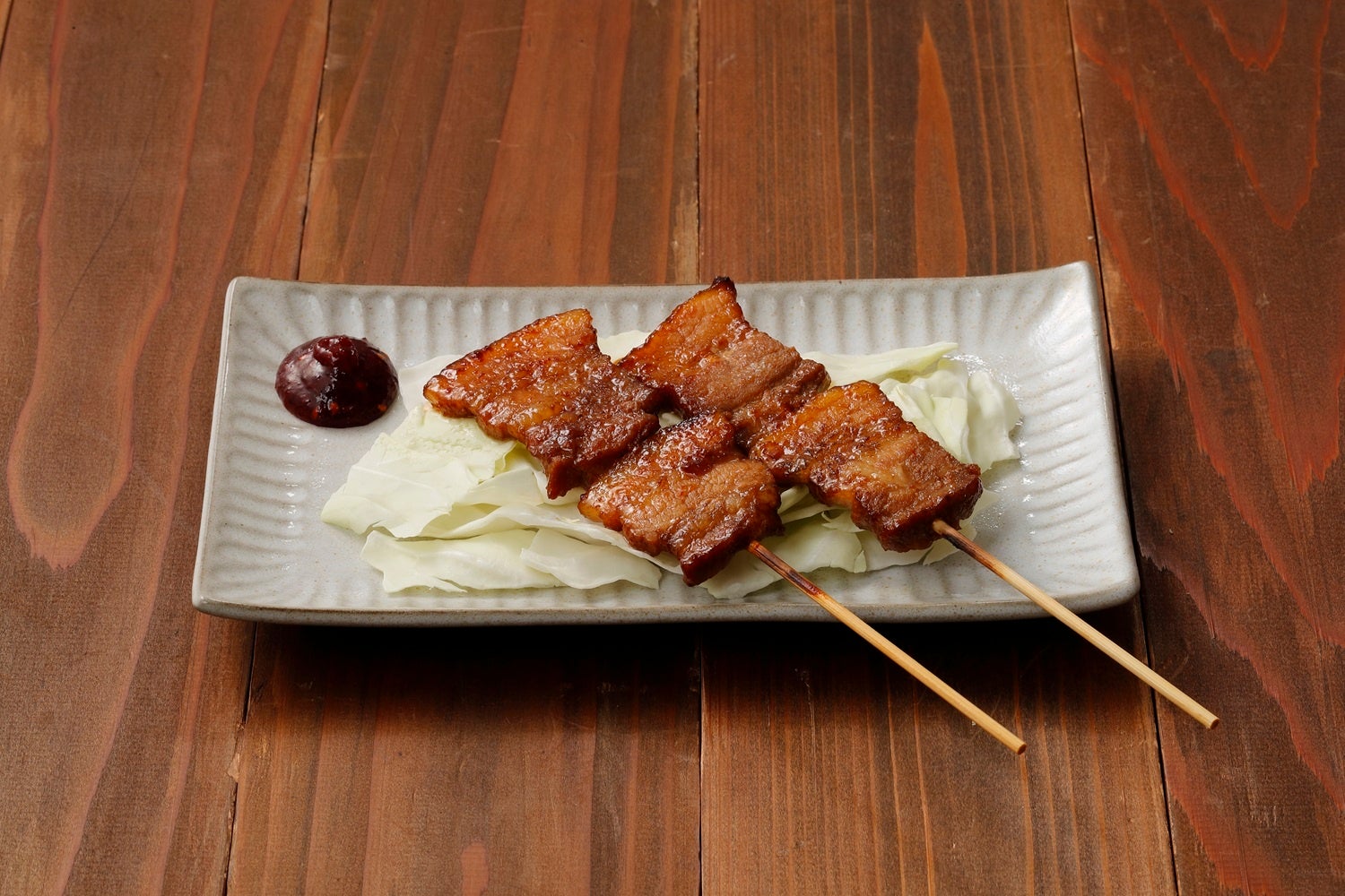 北海道産真昆布と枕崎の鰹節の一番だしをベースとした醤油ダレに漬け込み、丁寧に焼き上げた串焼です。