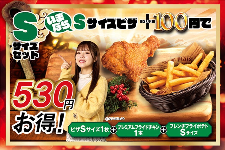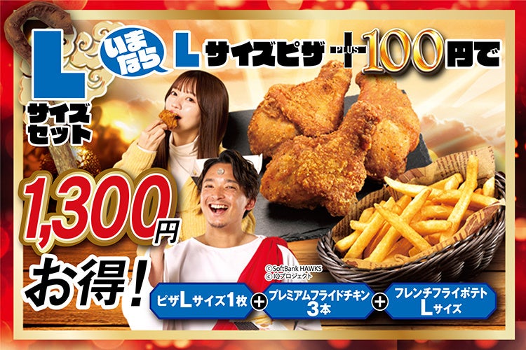 ピザクック(運営元:イワタダイナース 福岡市博多区諸岡3-25-20)から、毎年恒例のプラス100円セットが今年も登場!お好きなピザに+100円でチキンとポテトがついてくる+100円セット、ソフトバンクホークス東浜巨投手とLinQ高木悠未さん出演、TVCM放送中!(キャンペーン期間:2023年12月1日~2024年1月21日)