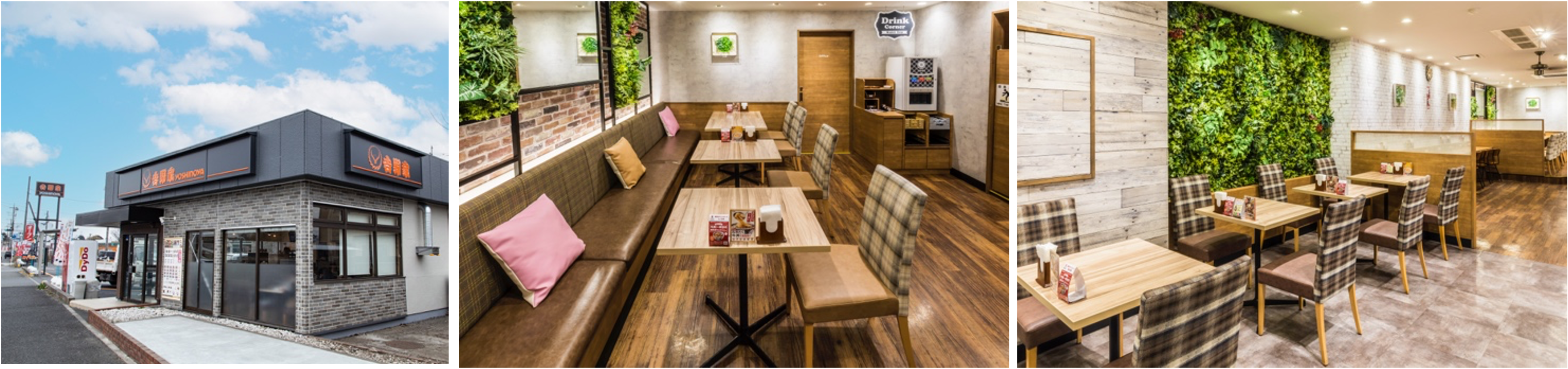2016年以降は「クッキング&コンフォート」スタイルの店舗を拡大し、吉野家でゆっくりと食事を楽しむ選択肢を提案しています。さっと食事を済ませたいお客様にも対応していますが、店内ではファミリーや女性、学生のお客様を含む幅広い層の方々が、ソファ席やテーブル席、デジタルデバイスを充電できるコンセントを備えた席で、「牛丼」「から揚げ」をはじめとした各種メニューを楽しみながら、くつろいだ時間を過ごしていることが特徴です。また、「クッキング&コンフォート」スタイルの店舗ではドリンクバーや健康志向に対応した「牛丼ON野菜」などを提供しています。