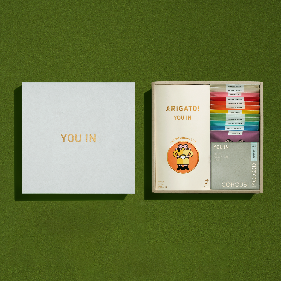 「YOU IN」は、気分やシーンに合わせる『ムードペアリング』を通して、今その瞬間の気分や状態に向き合い、寄りそい、肯定する、そんな体験を提案するウェルネスライフブランド*です。陽なときも陰なときも、日常の些細なひとコマから、ちょっと特別なひと時まで。この地で育まれた文化や歴史と共に、その瞬間を大切に思えるようなプロダクトを届けています。