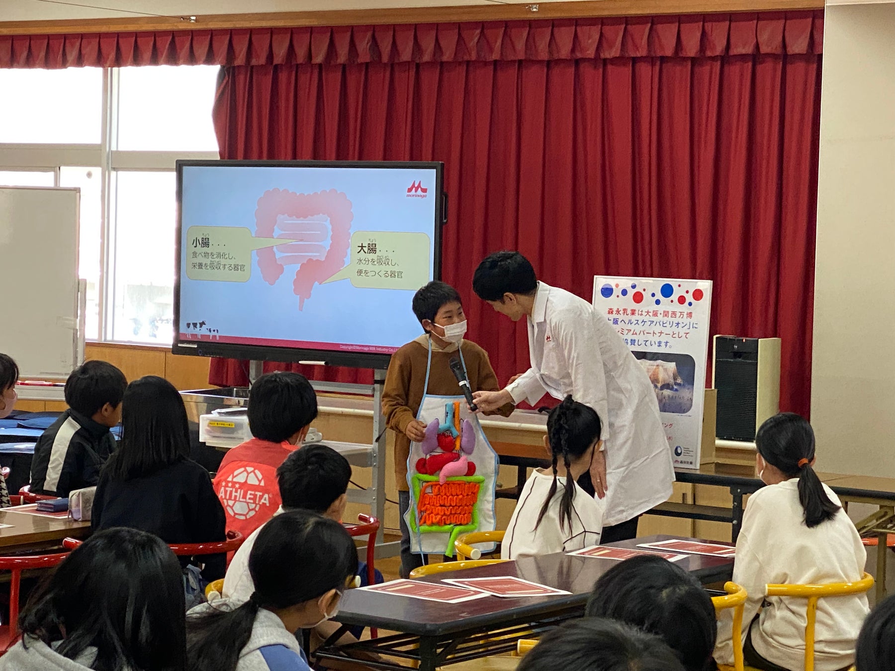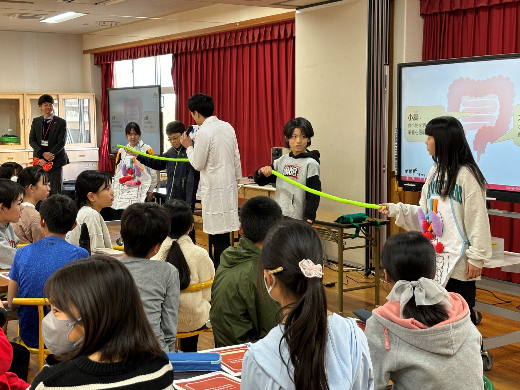 この度、「TEAM EXPO 2025」プログラム/共創チャレンジ※の一環として、関西エリアの未来を担う子どもたちにお腹から考える腸活・食育を伝えるため、小中学生を対象にしたオリジナルの特別出前授業「腸からつくるウェルビーイング出前授業 関西篇」を開催いたしました。第1回目となった11月30日(木)は、神戸市立だいち小学校の6年生(約150名)を対象に実施しましたので、事後レポートにてお伝えいたします。