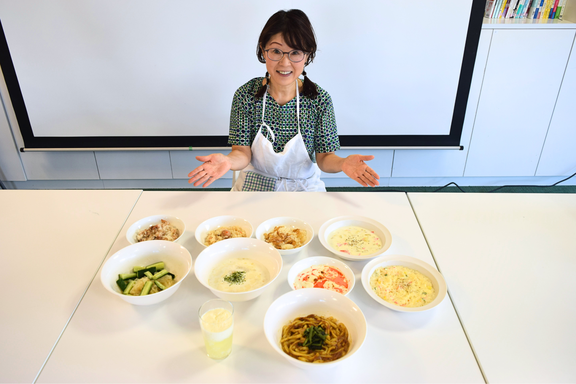 「物価高騰による買い控えで起こるのは、たんぱく質やカルシウムの摂取不足。栄養の総合デパートである牛乳を積極的に取り入れてほしい」と語る小山先生は、誰でも簡単に調理ができて栄養豊富であることをコンセプトに、牛乳を活用した「ミル活」レシピを考案。昨今、簡単に調理できるタイパレシピが注目を集めていますが、小山先生オリジナル「ミル活」レシピはタイパだけではなく、おいしさ・栄養・コスパにも重点を置いており、牛乳を使用することでたんぱく質やミネラル、ビタミンをバランスよく栄養を摂ることができます。