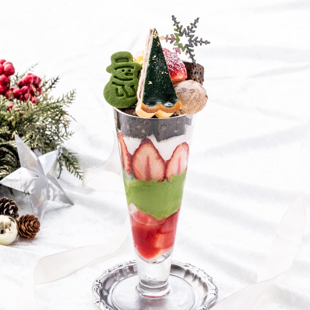 濃厚なほうじ茶ブラウニー、甘酸っぱい苺やフランボワーズジュレ、クリスマスツリーに見立てた抹茶と小豆のタルトから覗く可愛いスノーマンクッキーは抹茶味。職人が一点ずつ丁寧に手作りしたトッピングが映えるパフェに仕上げました。