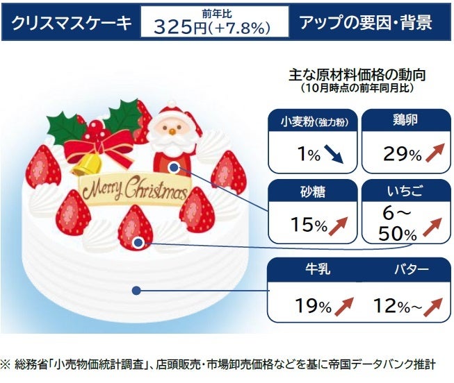 今年のクリスマスケーキ、平均4468円 前年から325円アップ、2年で1割超の「大幅値上げ」