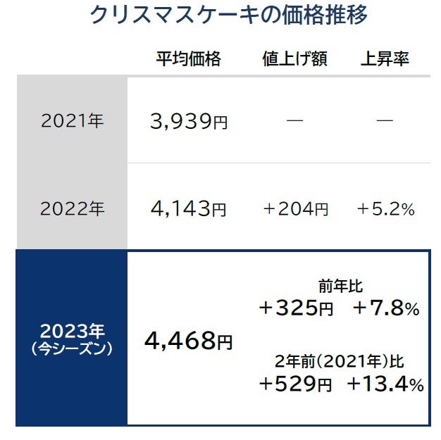 2023年冬シーズン「クリスマスケーキ」価格調査