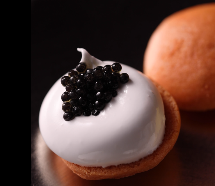 真っ白でふわふわな『awaはちみつ』に大粒で濃厚な『宮崎キャビア1983Premium』をのせて一口。