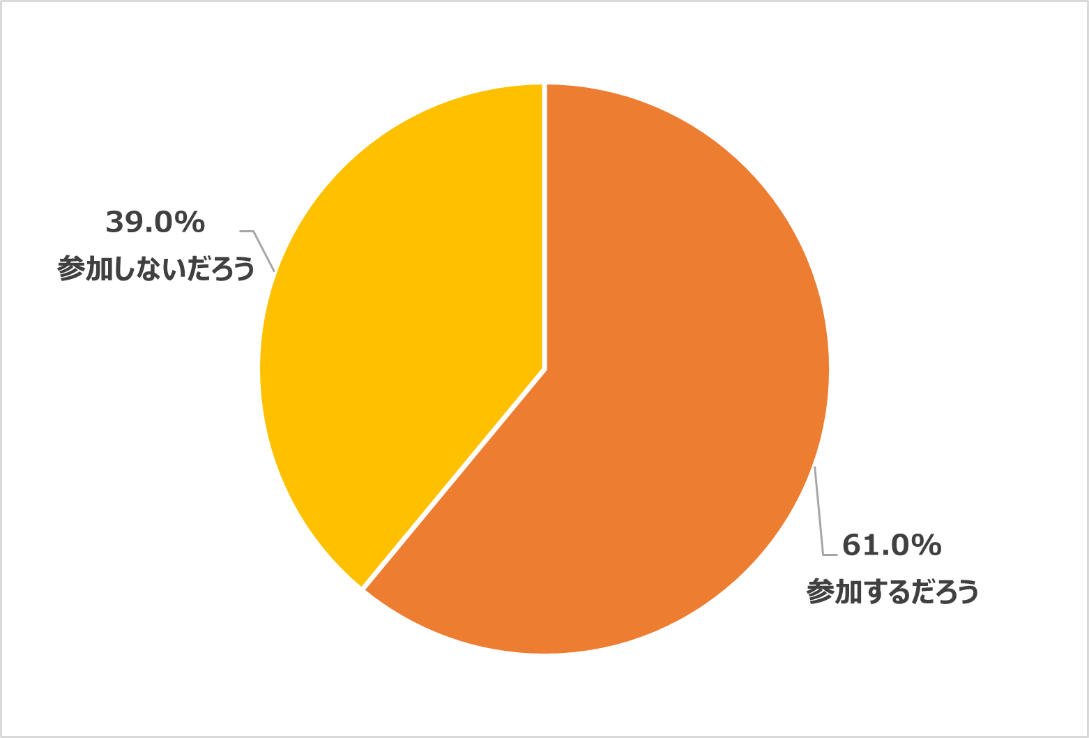 2023年の、納会に「参加するだろう」と答えた人は61.0%、「参加しないだろう」と答えた人は39.0%という結果になりました。