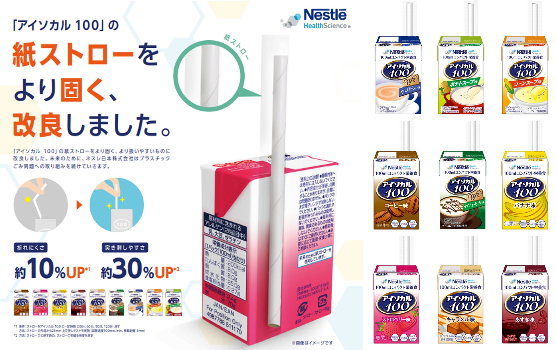 ネスレ ヘルスサイエンスの紙ストロー付栄養補助飲料の出荷本数は、2021年から2年間で33,000,000本を突破し、累積15.6トン※プラスチックが削減されました。