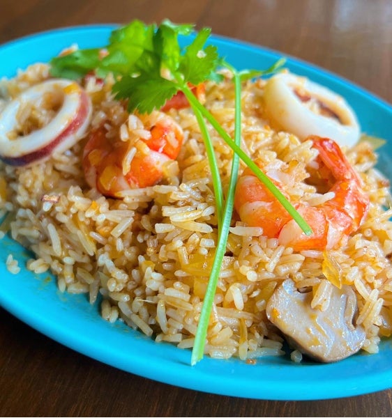 海老の旨味とレモングラスの香りが食欲がそそるトムヤムクン炒飯。パクチーとの相性が抜群で、トムヤムの味と一緒に香りも食欲も倍増!