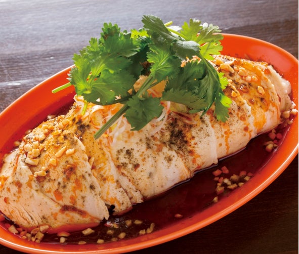 その名の通り、「よだれが出る」ほど美味しいという、中華の四川料理。鶏肉にパクチーを巻いて、花山椒の効いた特製タレを絡めてお召し上がりください。